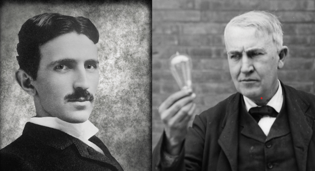 Edison terlanjur mengembangkan Direct Current (DC), sebagai sistem penghantar energi bagi lampu pijarnya. Dengan kejeniusannya, mudah saja baginya untuk meyakinkan para investor agar membiayai proyeknya. Ia memandang enteng saran Tesla, ketika masih bekerja untuknya, untuk menggunakan sistem yang berbeda, yaitu Alternating Current (AC).